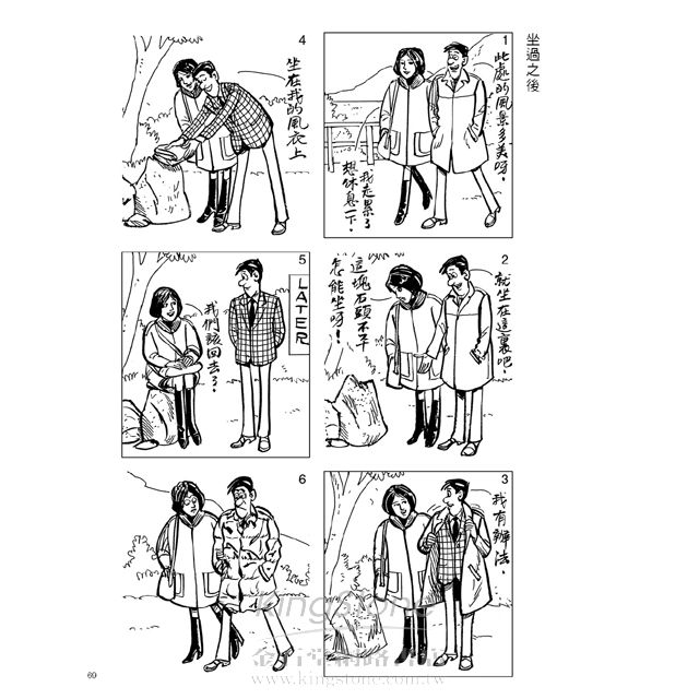 「漫畫迷」們(頁151),老夫子在老氏「宗親會」(頁100)發表了什麼「君子一言」(頁297)?好奇嗎?請快翻開內頁,肯定讓你笑到噴淚。看老夫子漫畫包您笑口常開,而且「大開眼界」。請一冊冊翻閱,青春秘笈全都藏在《老夫子年代大全集》喔。(文/邱秀堂)