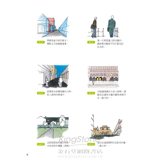 在描繪建築物等街景時,站在主體物件的正面會比較好畫,因此本書也刻意採用了這類題材。