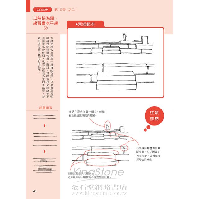 Lesson 第10天(之二) 以階梯為題,練習畫水平線