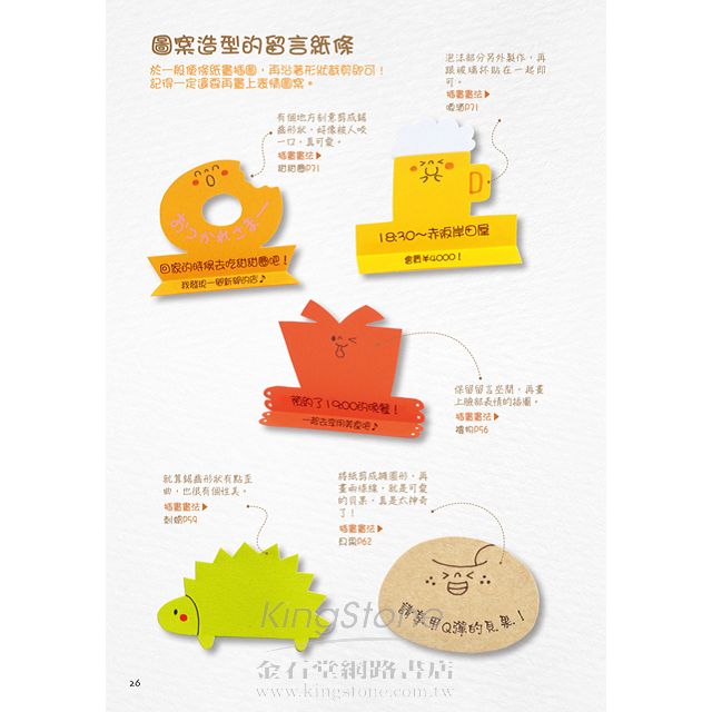 不要想太多,跟手拙不拙沒關係,現在就拿起筆來一起畫,讓可愛的小插圖豐富您的生活,平凡無奇的小留言紙只要加個小塗鴉,感覺就會很不一樣喔!