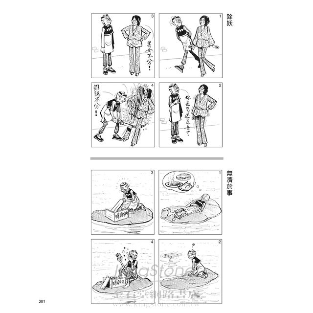 更有趣的,老夫子把自己打扮成007,他在「偷聽器」(140頁)裡偷聽到「是真是假」(119頁)「宇宙戰爭」(49頁)?老夫子的「狂想曲」(302頁)、「美夢成真」(249頁)「世外桃源」(242頁),好奇嗎?請看《老夫子年代大全集》25(1989-1990)。作者王澤以一支幽默的筆,在四格、六格、八格、十格、十二格等漫畫中呈現,且一一收錄整理在這套《老夫子年代大全集》絕對是發笑秘笈大全!(文╱邱秀堂)