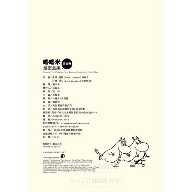 1954年朵貝楊笙開始在英國的《倫敦晚報》每日連載嚕嚕米漫畫,一直到1960年。之後,她將嚕嚕米漫畫連載的棒子交給小弟 Lars Jansson,Lars接棒後一直到畫到1974年。嚕嚕米的漫畫系列共集結成24冊單行本,至今已經被翻譯成60多種語言,現在各位讀者手中的則是全集版本。