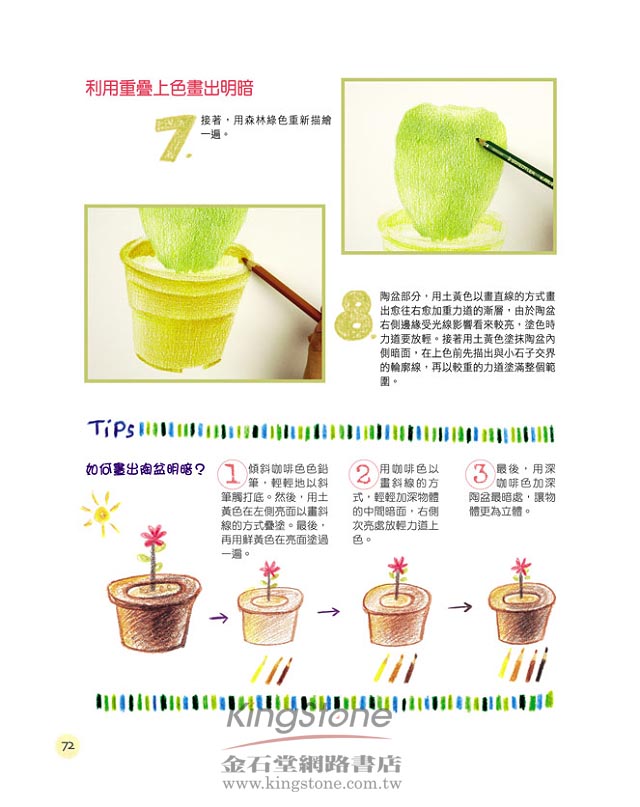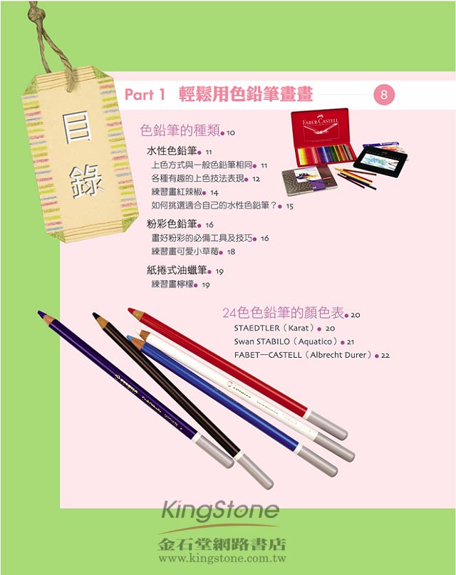 本書教讀者認識色鉛筆的種類、畫紙的特性、各種筆觸的畫法與技巧、認識各種色鉛筆的彩繪特性等,透過詳盡的畫作示範,引領讀者掌握運用色鉛筆的各項訣竅,完成畫作。