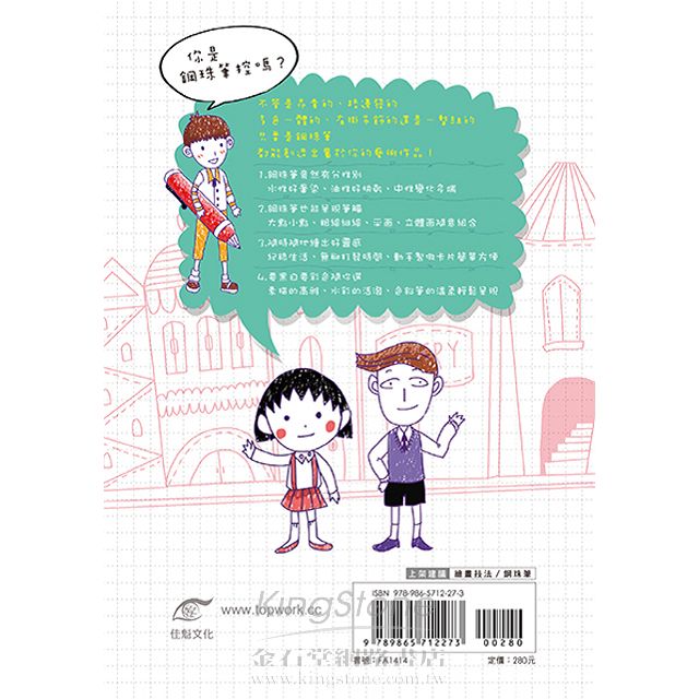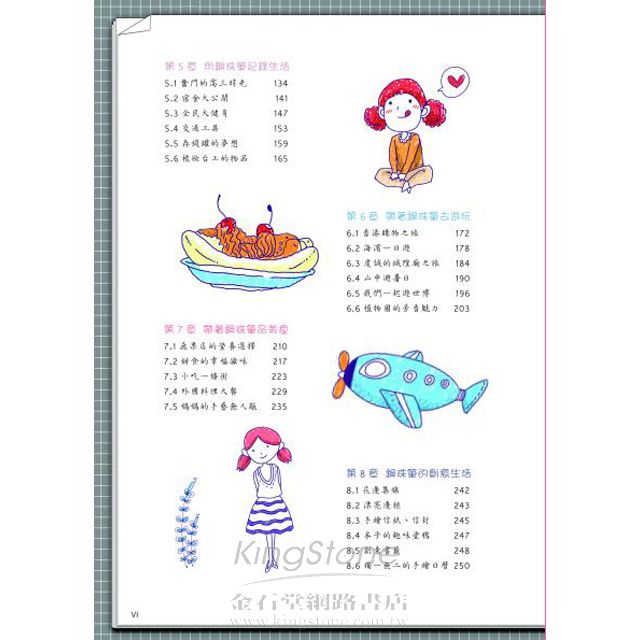 技法方面,將日常小物品、動植物、人物等循序漸進地分類解析。實例方面則分為生活、遊玩、美食、創意四大部分,按步驟講解,讓你快速上手、愛上用鋼珠筆畫下生活的美好。如果你覺得畫畫無趣,那一定是你沒有找到進入繪畫世界的鑰匙;如果你覺得畫畫困難,那你一定是沒有發現塗鴉的樂趣。不要覺得畫畫南,更不要認為自己沒有畫畫天分,讓我們從最簡單、畫法最基礎的書寫工具-鋼珠筆繪畫下手!