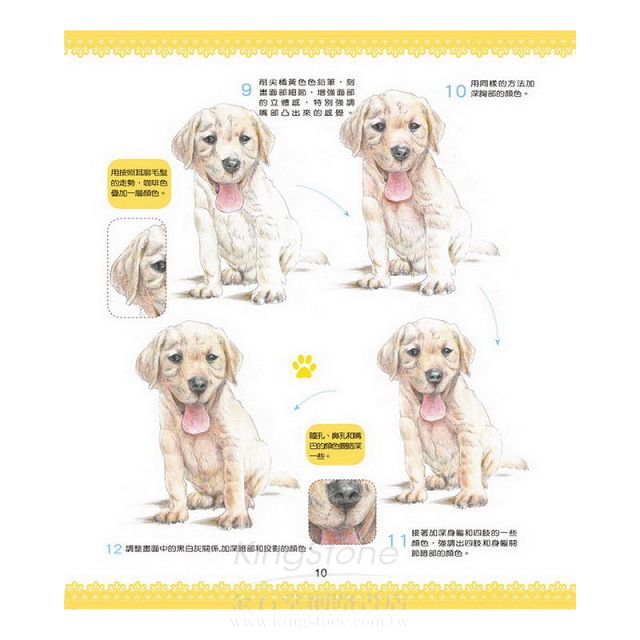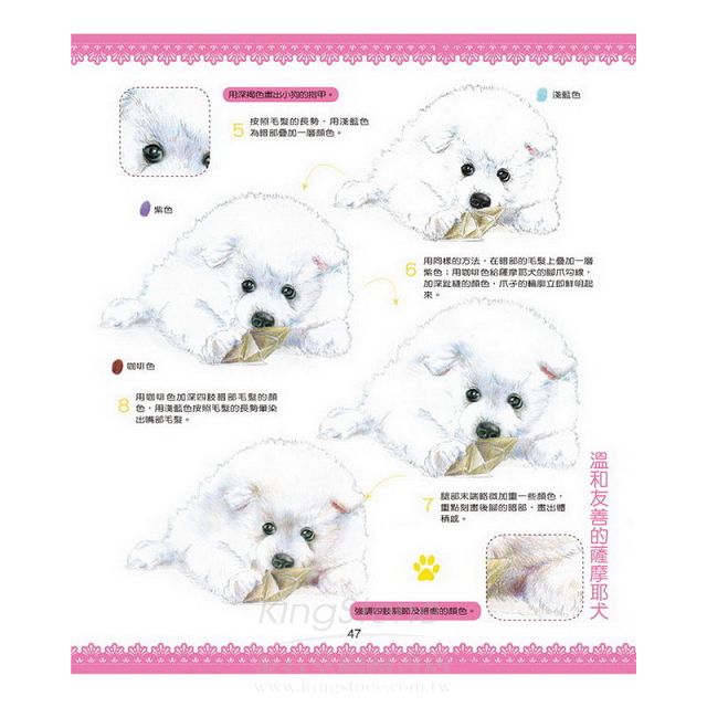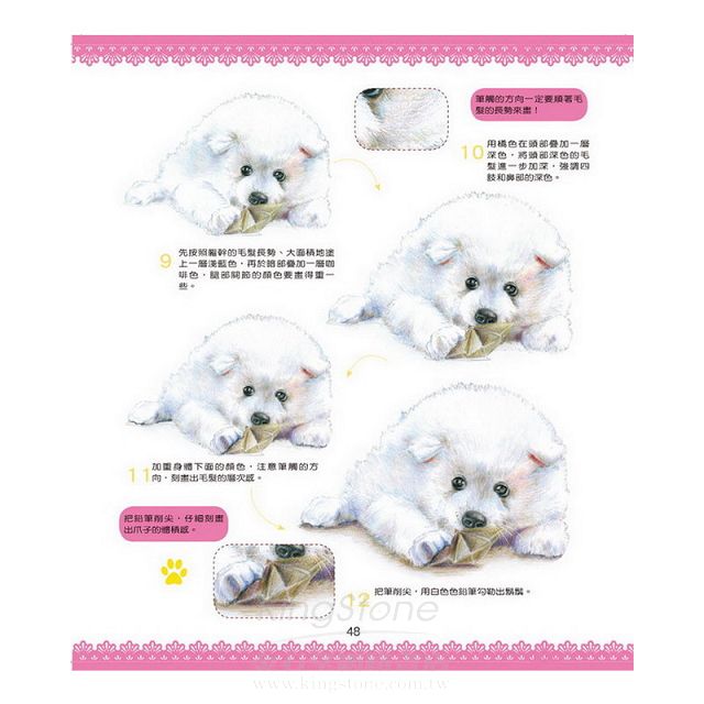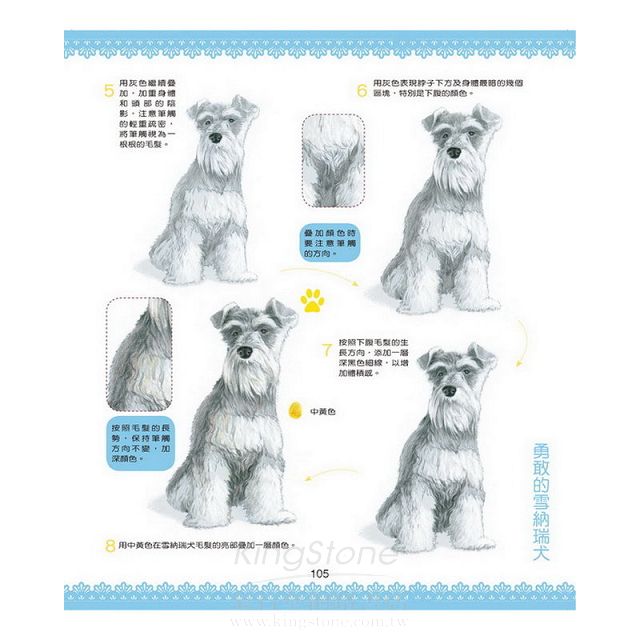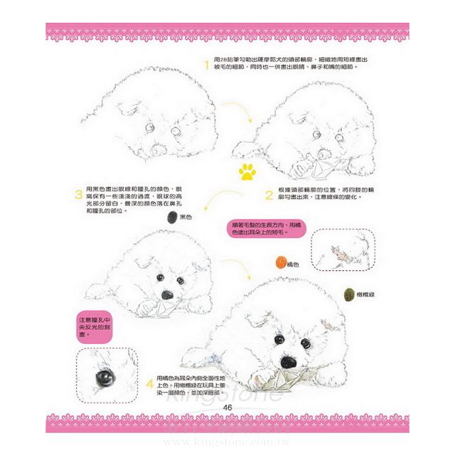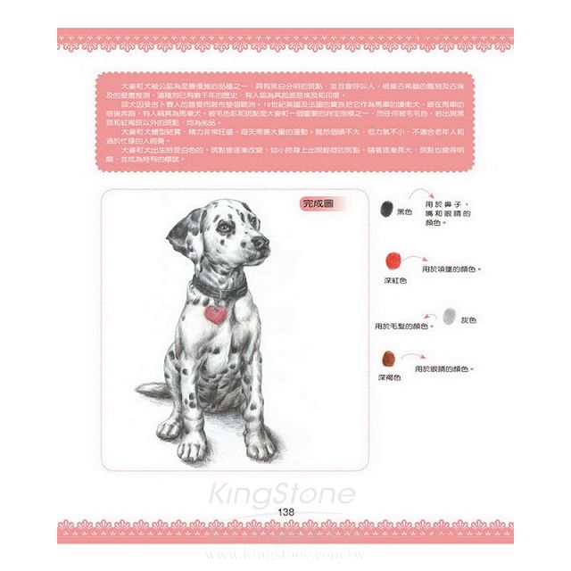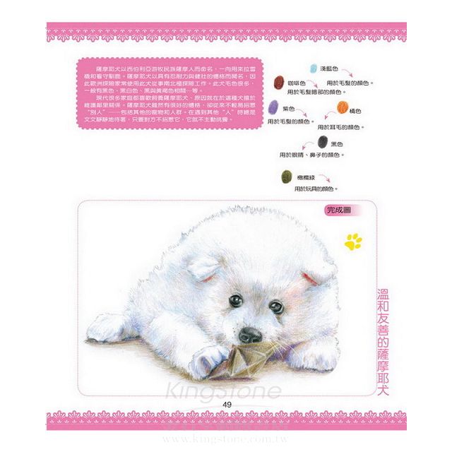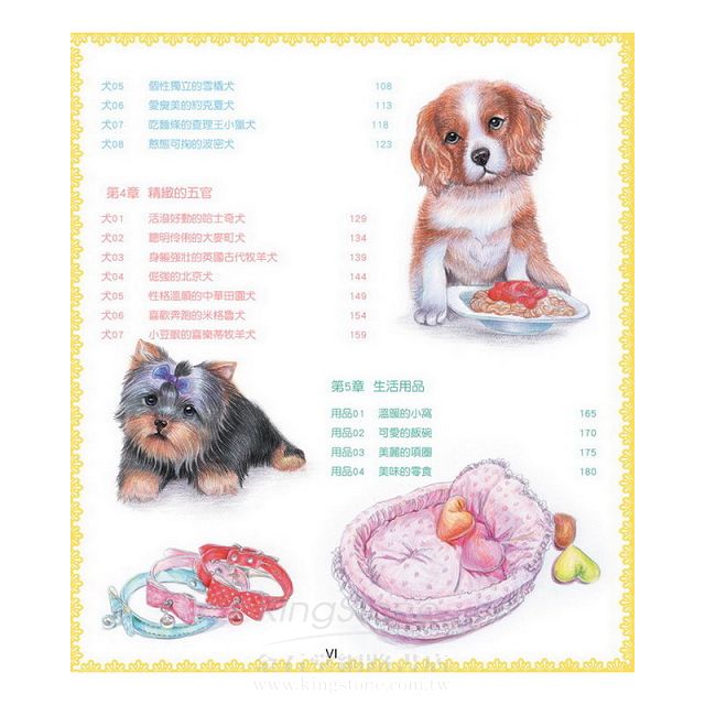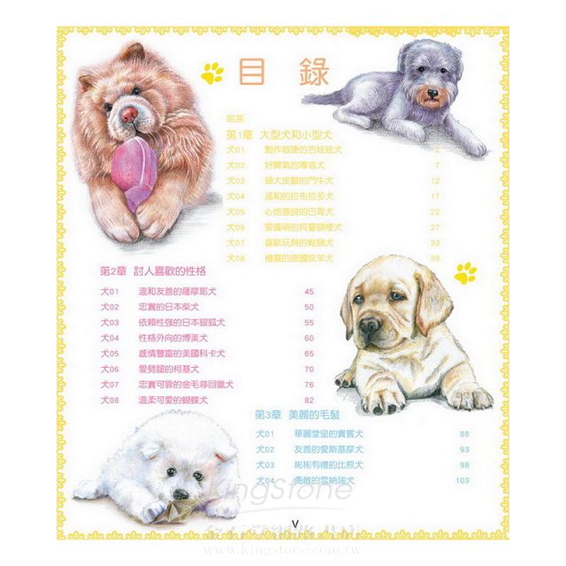 本書介紹了31種犬的畫法和4種寵物用品的畫法,由易到難,簡單明瞭,繪製步驟不僅有範例圖示,而且還有細節的放大圖,將每個案例的重點提煉出來供讀者學習和參考。本書結合基礎與實用,為初級繪畫者講授了靈活的色鉛筆繪畫技法。
