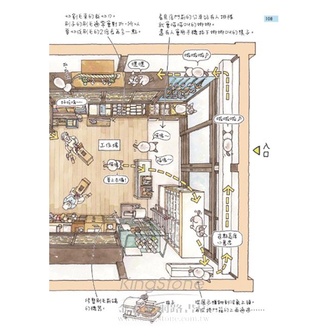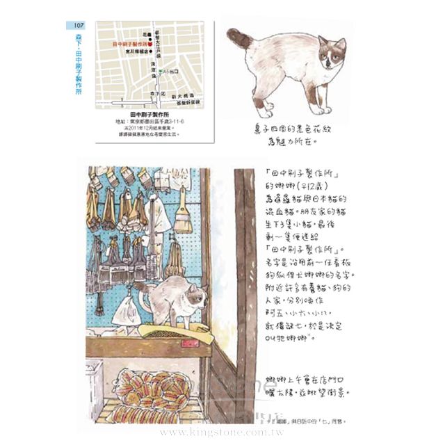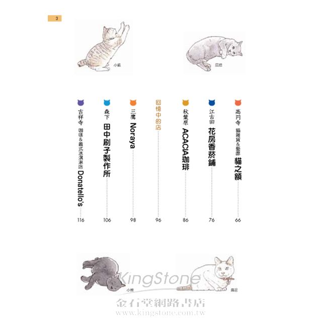本書作者便是走訪了東京巷弄裡有著超萌、超療癒貓咪的12間店家,以其精美細緻的插畫與活潑生動文字介紹店裡貓咪迷人的一面,同時還畫出店家內裝的空照插畫,讓人可以更清楚了解貓咪活動的空間、動線與店家擺設的特色之處。