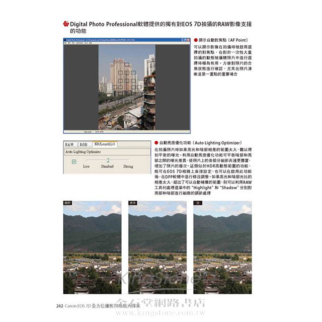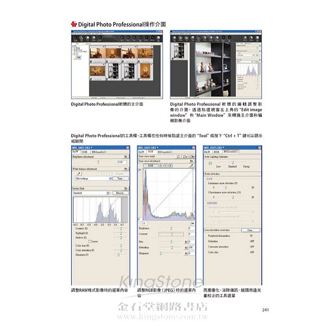 ◎佳能原廠軟體說明◎簡單易用的綜合數位照片平臺◎DPP-數位暗房處理技巧◎經過後期處理的RAW格式和JPEG格式照片比較◎色彩管理的基本概念