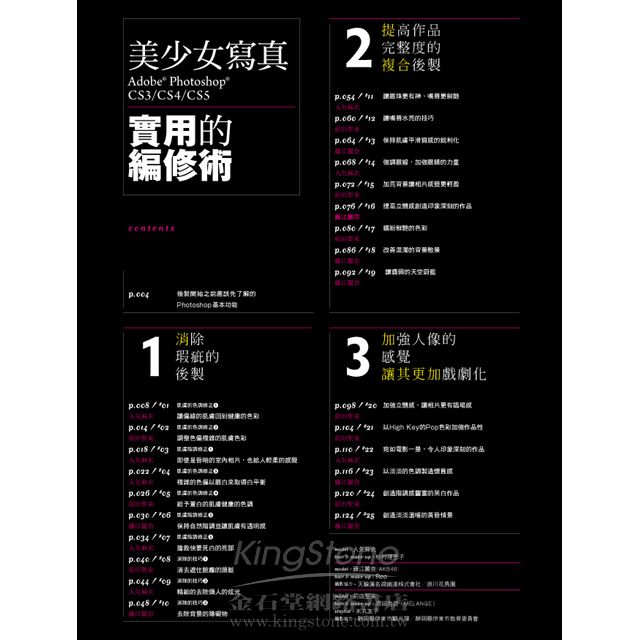 《美少女寫真--實用的Photoshop編修術》提供3大主題、25種必學的美女拍攝+修片技巧。
