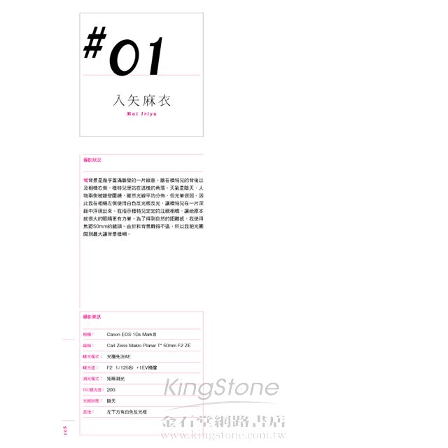 透過耀眼的滿版A4美女寫真、搭配完整的拍攝資訊以及狀況說明,您可以一目了然地瞭解到每一幅作品的誕生經過。除此之外,更能夠學習到簡單、易懂卻非常實用的美女人像編修技巧。
