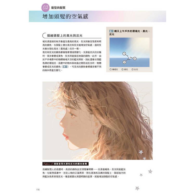就像人們運用各種技巧和方法化妝一樣,繪製一幅引人注目的人物肖像也需要在有限的元素內創造視覺焦點。光線至關重要。本書以淺顯易懂的方式講解了從如何在人物插畫中表現光線,到如何構圖和配色以光線為考量,再到如何利用光線突出面部特徵和姿態等方面。本書將幫助你創作出更光彩照人、引人入勝的少女插畫!