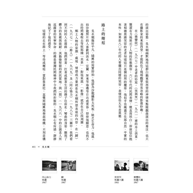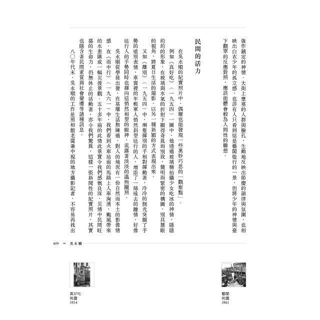 這套介紹四○到六○年代本土紀實攝影家的書,二十七年前在臺灣能夠出版,算一個異數。一九八七年國民政府剛宣布解嚴,施政上仍以政治擴權與經濟建設掛帥,對教育、文化不甚重視。當時臺灣主體意識還沒那麼強烈,本土精神剛萌芽,但談及攝影的專欄與書籍寥寥可數,更別談前輩攝影家的專輯了。為了梳理臺灣攝影的脈絡和資深攝影家的時代足跡,我開始四處訪談、撰寫,系列性的在《光華》雜誌上發表。三年之間,這些滿載庶民生活、勞動、信仰的面容與身影能在政府刊物上大幅連載刊登,在當時也算一個突破和起步。過去,如果這些照片曾經帶給我們「鄉愁」與「懷舊」的慰藉和抒解,今天的再現應不僅於此,更該是一種「理解」與「認同」的召喚和肯定,這些照片,讓我們認同我們是甚麼人,理解我們怎麼走過來的。