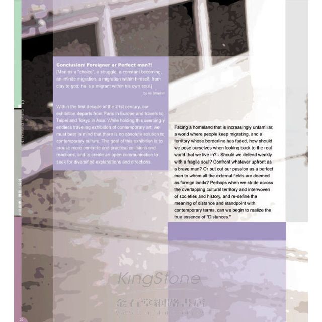 書中從文化、距離與錄像藝術介入觀點,詳細地介紹了「D調/Di-stances-D調當代影像裝置藝術展 暨法國菲諾爾當代錄像影展」的展覽內容;藉由10位跨國遷徙者的影像裝置藝術,以及歐洲前衛影像藝術重鎮「菲諾爾影像藝術工作室」的影展,思索影像與真實世界的關係。