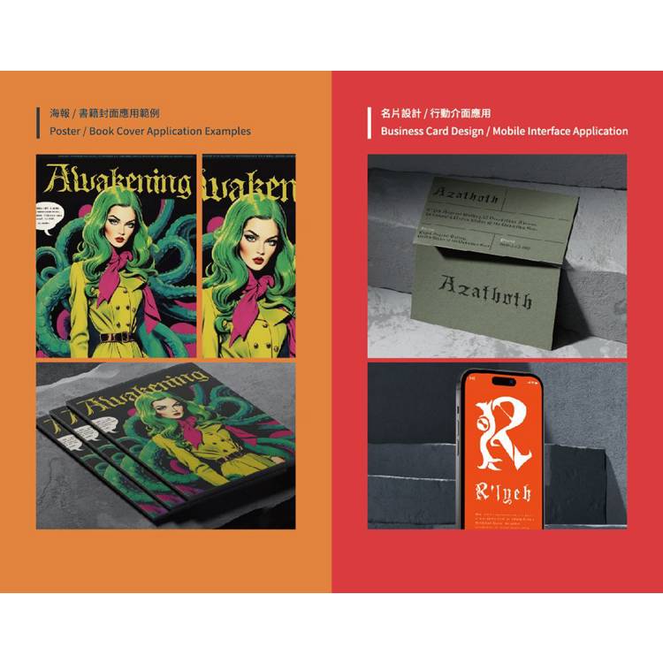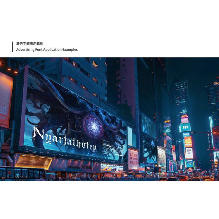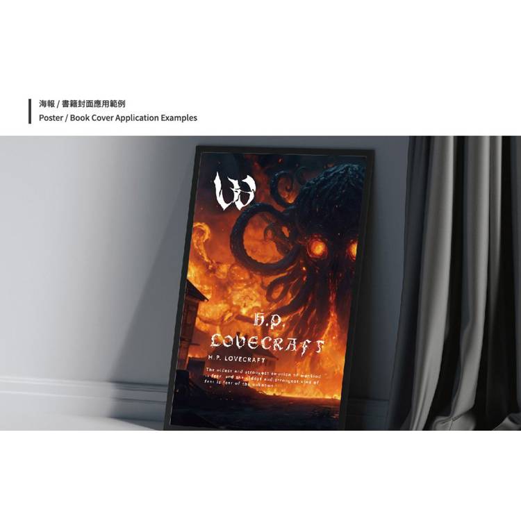 適用於海報設計、書籍封面、影視標準字、遊戲 UI、包裝與服飾圖像設計。