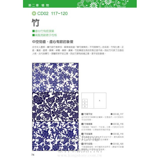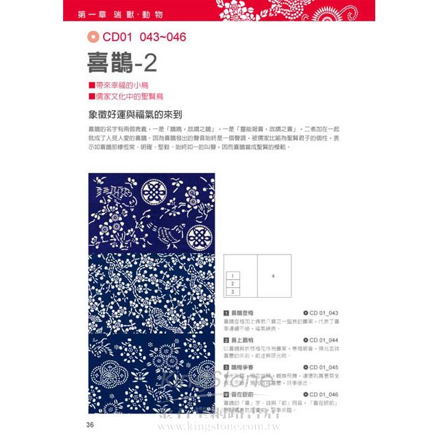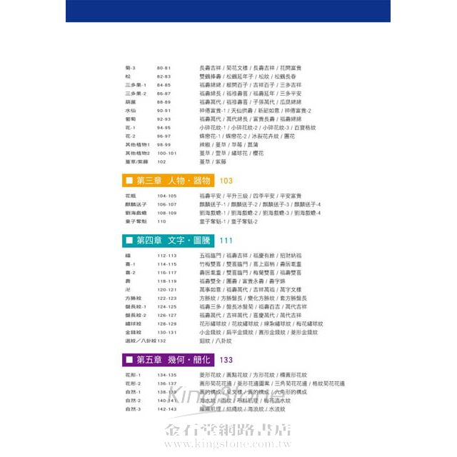 ◎解說最詳盡:每一種文樣皆詳細說明歷史、淵源、特徵與用法等。