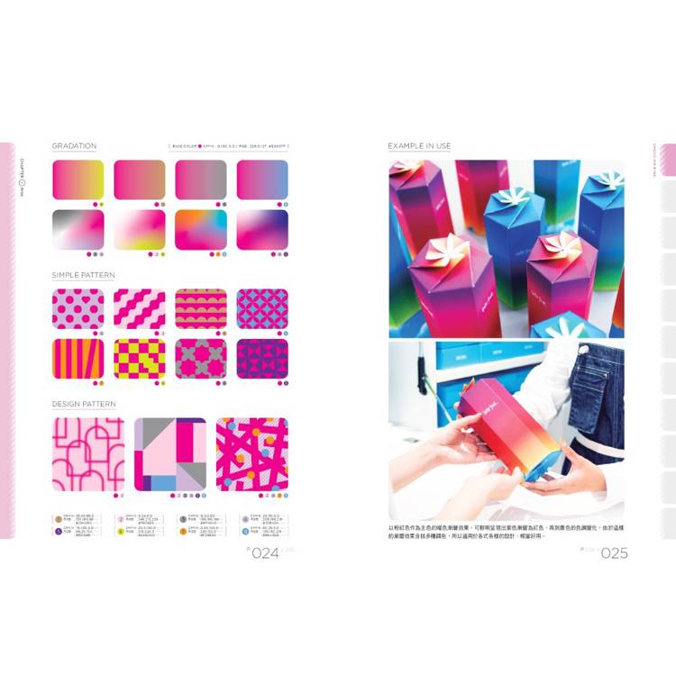 本書以粉紅色揭開序幕,並依色相環排列,按照紅、橘、黃、黃綠色的順序展開,章節架構就像從蠟筆盒中選色一樣,直觀易懂。本書豐富的1691種配色、259款實拍範例以及665種設計圖樣,給足靈感素材,設計範例皆有重點解說,直擊重點,是來自日本非常實用的配色參考書,給足一般色彩書中少見的大量設計作品實拍範例,有助親眼見證設計效果。