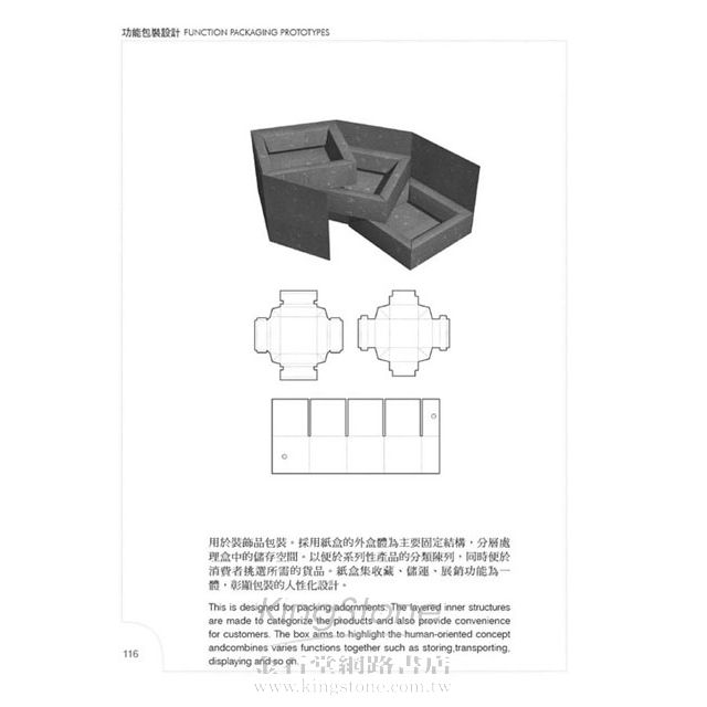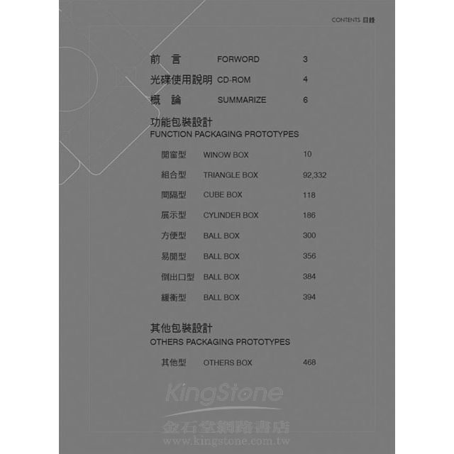每款包裝紙盒設計皆收錄3D實體圖與平面展開圖,並針對紙盒用途與設計特色進行解說,讓您可以充分掌握包裝紙盒設計的多樣架構,進而因應內容物的不同來選擇合適的紙盒型式。書中的豐富圖例不僅是學習包裝紙盒設計的好參考,亦是就地取材的好對象,具有「隨挑隨印,立即使用」的特點。