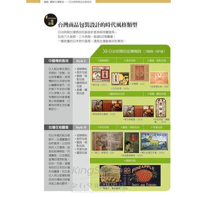 塵封近百年,超過500張的圖像,與台灣早期日常生活息息相關的商品包裝設計風格內容簡介