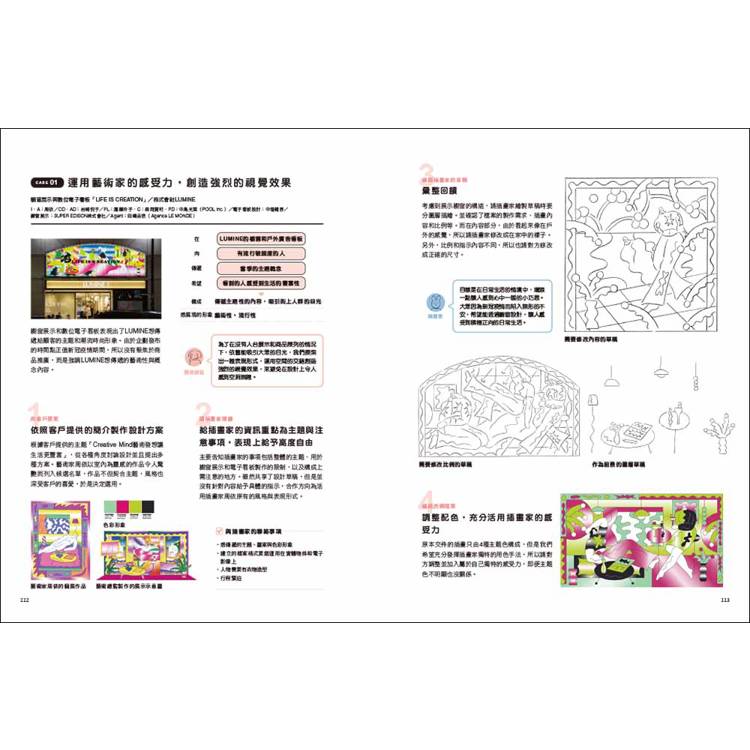 包含釐清目標風格、挑選適合插畫家的方法,以及洽詢、溝通、稿費洽談的實務操作,