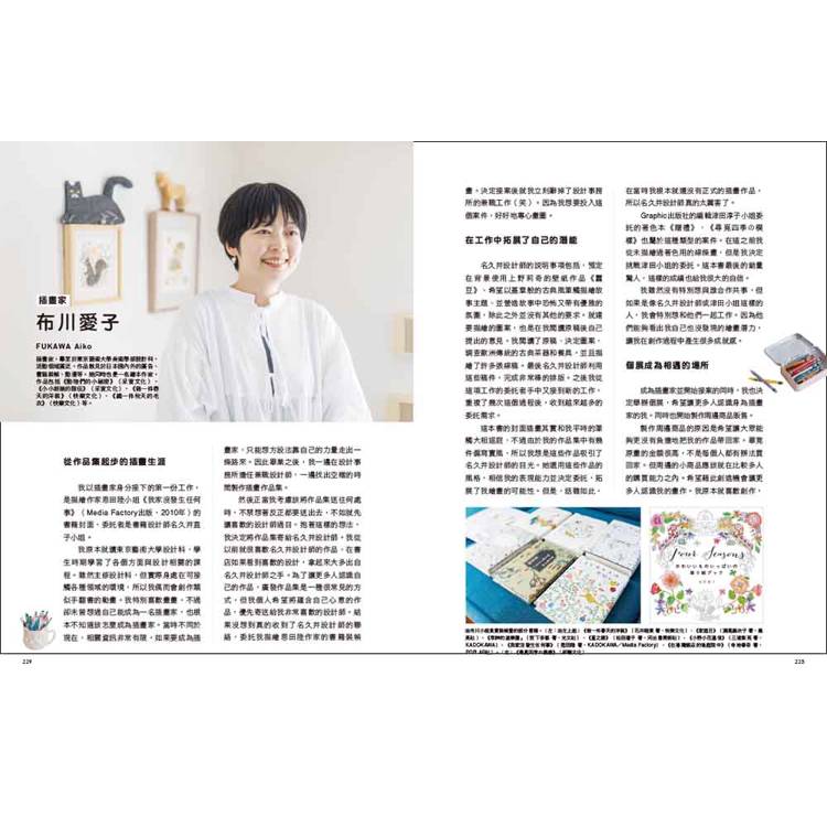 當你對一件事了解得越多,就越能體會到其中的深奧,也越能在過程中感受到珍貴和趣味。我很希望能夠讓更多人明白與插畫家一起創作的樂趣,以及更重要的──認識插畫家與插畫的魅力。若這本書能成為讓大家更了解插畫重要性的契機,我將感到莫大的喜悅和榮幸。