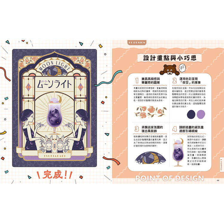 常有人聽到「設計」,便直覺高不可攀,即便有想嘗試動手的念頭,也會因為摸不著門路而卻步,本書便是為了解決設計新手面臨到的風格與實務問題,給予明確方向和範例。作者小尾洋平有豐富的設計經驗,不僅擅長可愛插畫,連書籍裝裝幀、產品包裝設計等都有獨特的辨識度。