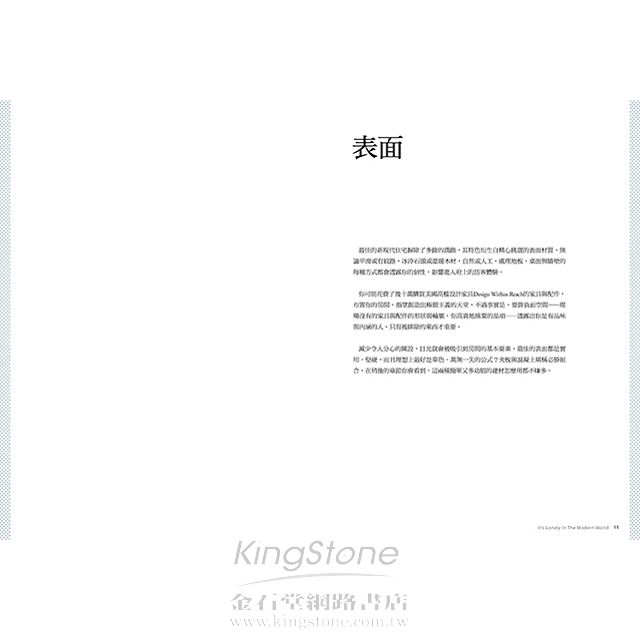在本書中,我們會幫助你變潮變時尚。從椅子與屋頂到小孩與寵物,容我們成為你新生活方式的嚮導。您將允許自己從平庸物品的陷阱中釋放出來,放棄固有的物質愉悅概念,在陰沉的臥室中醒來而感到樂趣。你會開始欣賞一片蟲蛀夾板中不規則的溫和美感,並且享受赤腳走過碎石庭院的搔癢。