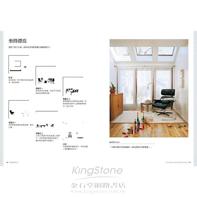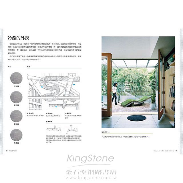 你即將展開一段改變人生的旅程。很多人夢幻地翻閱居家雜誌,卻很少人擁有設計天賦與耐力踏出下一步,端出他們自己的現代傑作。要有強悍的人格才能夠簡化到真正活在現代住宅所需的最少私有物品。