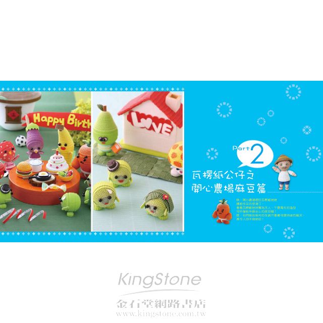 《開心農場Fun心做》是本適合親子一起翻閱的手作書,也是一本短篇故事書,正因為瓦楞紙捲做公仔沒有太大的難度,只需準備剪刀及保利龍膠(親子互動建議使用,較安全喔)等工具即可馬上動工,爸爸、媽媽與小朋友共同製作更多造型可愛的蛋捲娃娃,增進親子間溫馨的互動,讓小朋友展現無限可愛的創意,您會發現您家小寶貝腦袋中的稀奇古怪,創意與歡樂無限。
