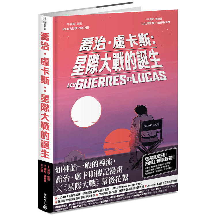 第一本喬治.盧卡斯(George Lucas)傳記漫畫,從不羈少年,成為撼動影史、打破多項紀錄現象級導演的每一步腳印,在法國漫畫家荷諾.侯煦(Renaud Roche)生動畫筆下召喚重現,一頁一頁有如親臨現場。