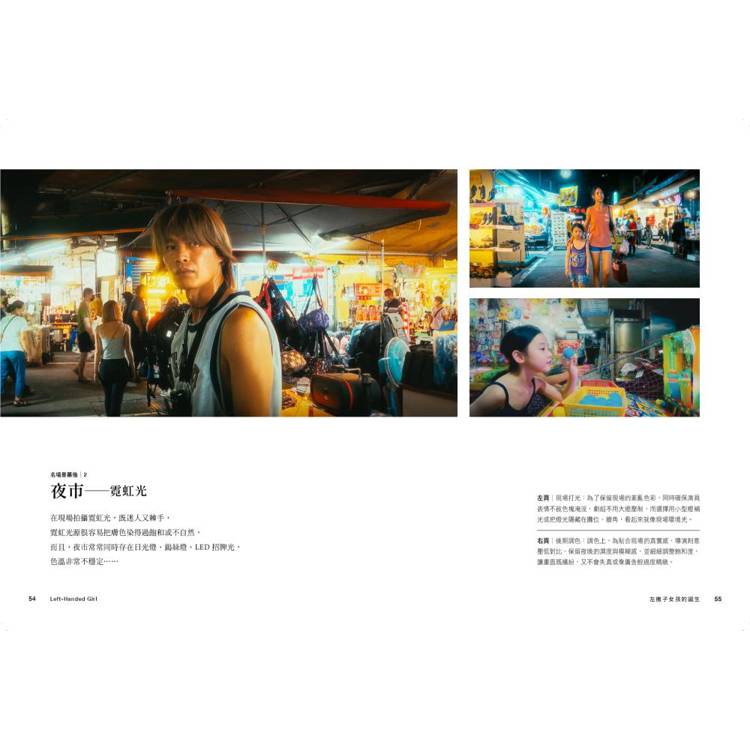 2003年執導《外賣》(Take Out, 2004),這部作品讓我們經歷了第一次完整的創作洗禮與磨合,我們的默契更加深厚。我們在2010年,帶著更堅定的信念回到台灣。這次我們不再只憑直覺行動,而是正式進入田調、尋找角色、打磨劇本的過程。最具台灣地方特色的夜市於是自然而然地融入了我們的故事。它不只是背景設定,更是一個充滿在地聲音、色彩、味道與人情的角色,是濃縮台灣節奏與性格的空間。當然我們也很清楚,要讓這部電影真正成立,不能只是個人的記憶堆砌,必須是有共鳴、生活的,保持對人性的好奇,是一個觀眾能夠走進去的世界。於是我們走遍了台北市與新北市的大大小小夜市,試圖尋找我們心中的那個左撇子女孩,期望能在某個不經意的角落,遇見她的身影。最後我們在通化夜市遇到一位五歲的小女孩,她正在麵攤旁陪著媽媽做生意,眼神裡有著某種超越年紀的沉穩與懂事。她不需要演,她本身就是故事裡的那個小女孩,我們以她為主角拍了第二支預告片。畫面裡,她穿梭在巷弄與燈火通明的夜市之中,帶著一種自由而安靜的力量。我們帶著這支短片參加台灣金馬創投,也入選了美國Film Independent的Fast Track(快速配對計畫)。這些畫面讓我們得以向世界說明:這不只是我們想說的故事,而是生命狀態的本真,是一段值得被看見的渴望。