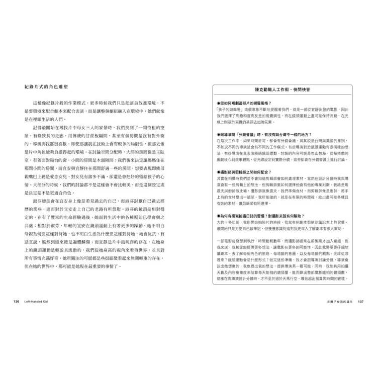 ★「從台灣到美國,再回到台北夜市巷弄,鄒時擎運用經驗所學,秉持獨立精神,將有限資源轉變成無限創意。一條堅持25年的漫漫電影之路,讓《左撇子女孩》最終得以開花結果。」──馬曼容│台北電影節選片人、影評人