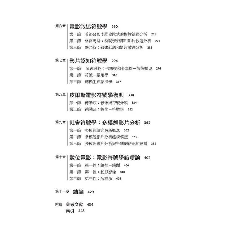 1992年我整理和編輯以前所撰寫有關電影符號學的文章,以《電影符號學》為名由台北書林出版。文章今日看來十分青澀,涵蓋的歷史和議題較為分散,而系統也並不那麼完整,這可能是由於鑽研電影符號學理論的初階所致。重寫電影符號學的長期想法得感謝上海東方出版中心和書林的邀約,才得以執行和實現。因而本書撰寫的目的,首先即打算對1960年代電影符號學的歷史沿革,即過去、現在甚至未來,也就是從古典到數位時代的發展,作一符合學術現況的討論,以補此一歷史空白。