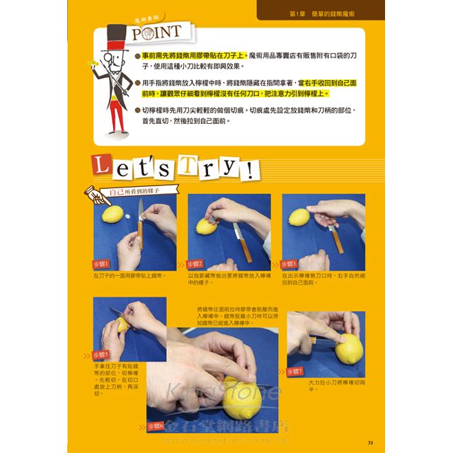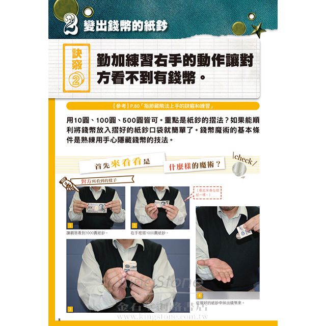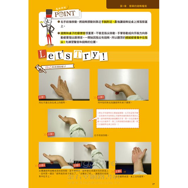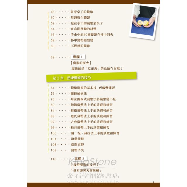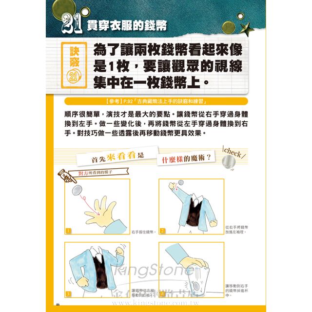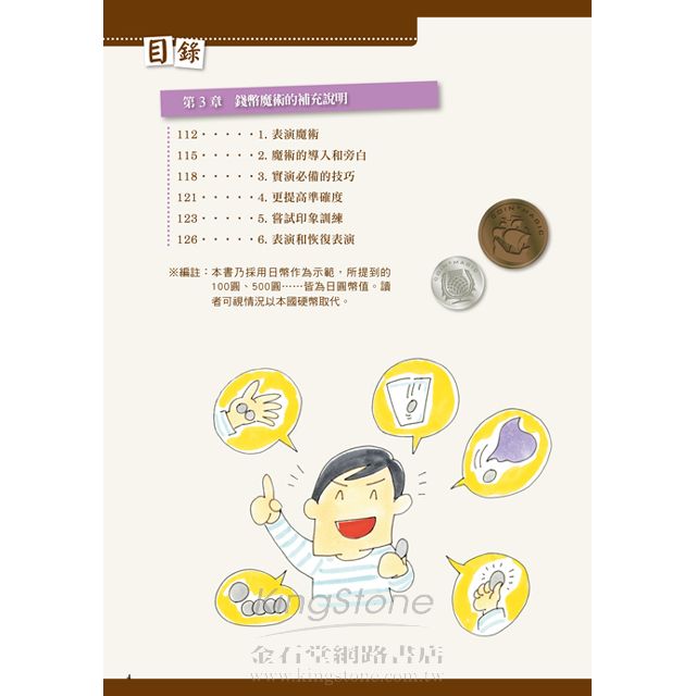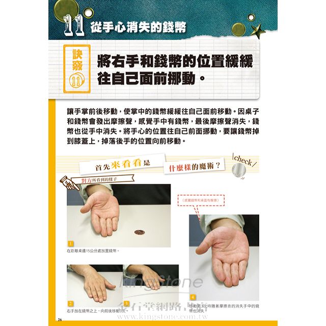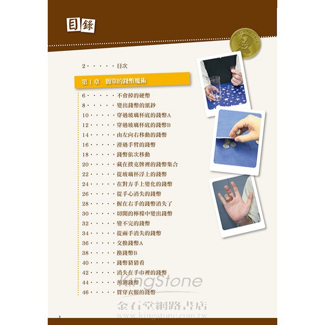 1.利用一個硬幣,設計出各種魔術表演,可說是錢幣魔術的大全。