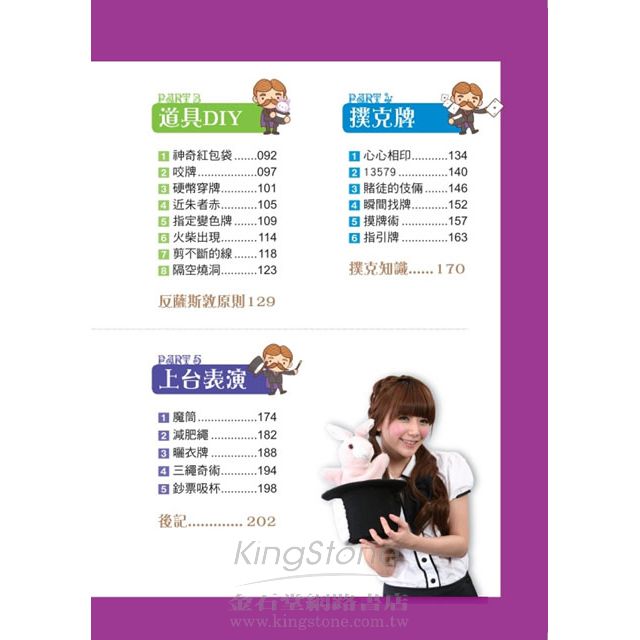 四、收錄34個有趣的魔術教學,包含清楚的步驟示範和重點提示,讓你輕鬆上手!