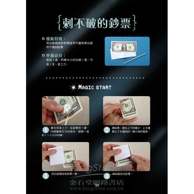 ★ 5種魔術技法,透過詳細的圖文解說及DVD教學,只要有心,人人都能上手!