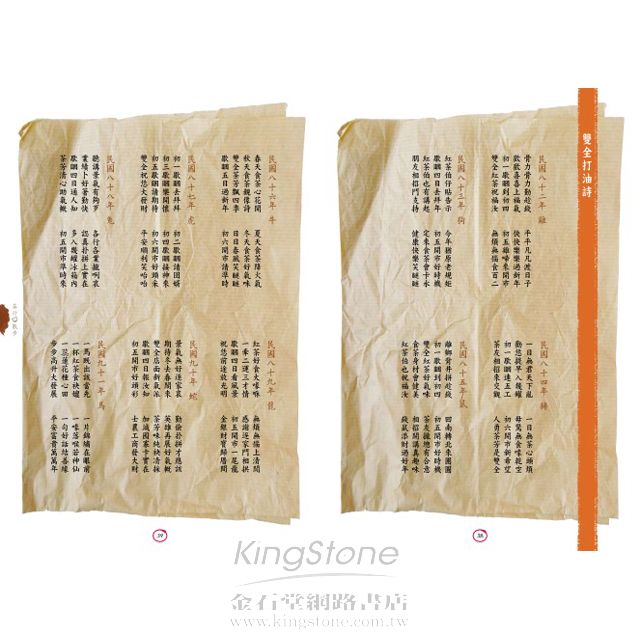 「傳統老店」,介紹了榮昌打棉廠、泉興草蓆店、雙全昌鞋行、合成帆布、府城老神堂.神像藝術沉檀香品等五家傳統老店,這些老店至今仍舊屹立,是台南傳統產業的代表,讀者可透過文字與店鋪照片,看見城市的真實面貌與產業傳人的生活姿態。