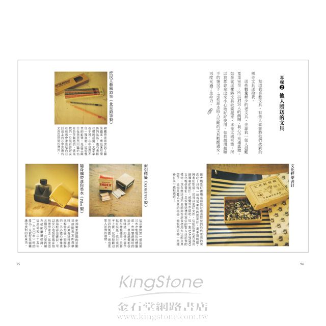 ◆與回憶中的文具相遇時分,透過作者感性的描述,讓人彷彿親身造訪老文具店、親手撫摸到這些富有時代風華的文具。