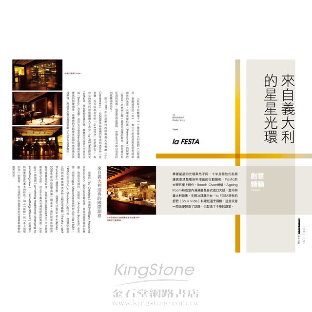 ◎排除一般美食情報書的片面資料,提出「終極美味的關鍵」,為每家餐廳的極致美味定下高標準的挑剔註解,讓讀者品讀本書、品嘗美味,還更進一步地,培養出高妙的品味。