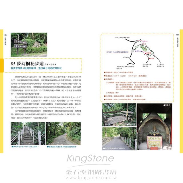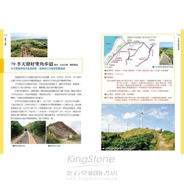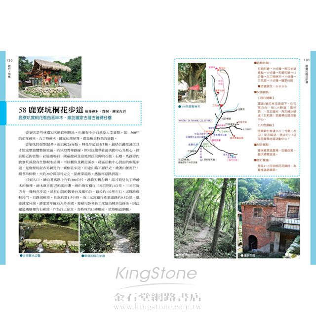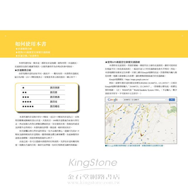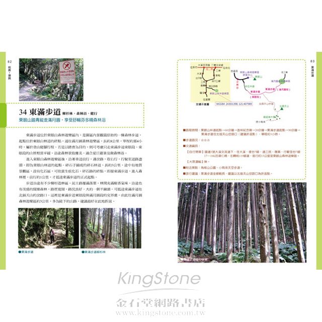 本書內容精簡紮實,收錄100條桃竹苗自然景觀步道和導覽地圖。每條步道都附有路程時間、步道路況、交通資訊、附近景點、旅行建議,是很實用的自導式手冊。
