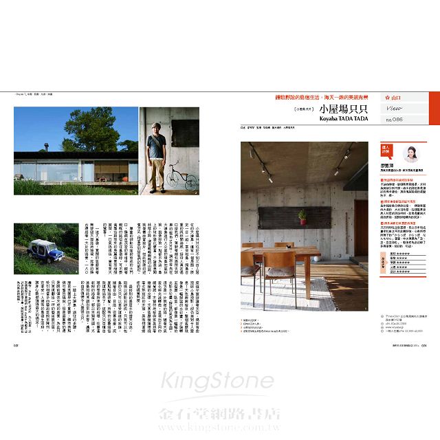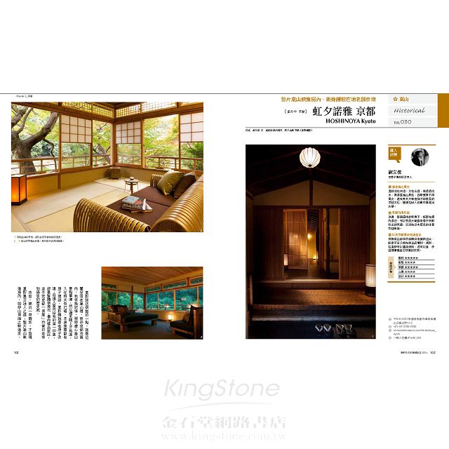 *日式的生活美學:無倫是自詡富於深度的文化旅遊者,或者純粹為了單純的閱讀樂趣,本書特別企畫深入導覽專題,專訪三位不同面向的旅館專家——日本旅館達人、旅店經營者、設計旅店建築師,讓讀者們入住日本旅店,不只是單純的享樂,更深度了解其背後的文化、設計與生活意涵。