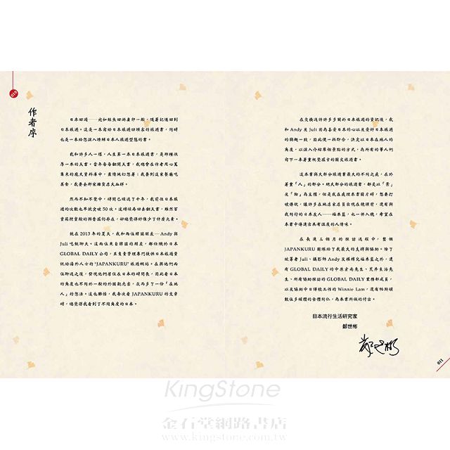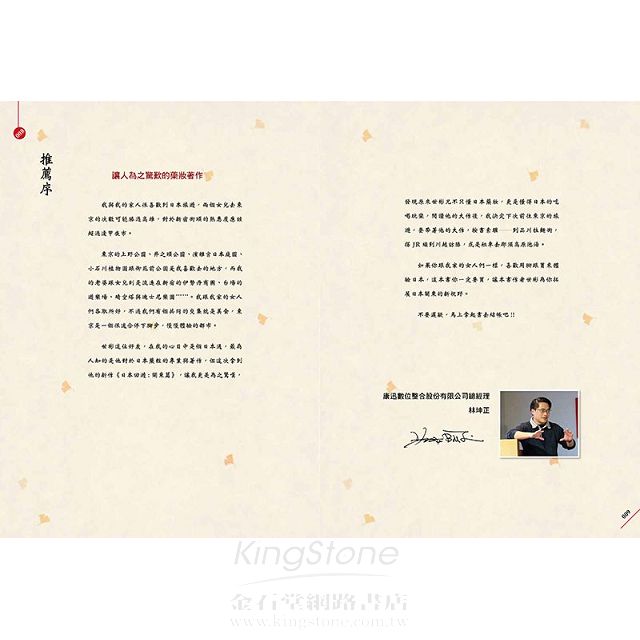 世彬這位好友,在我的心目中是個日本通,最為人知的是他對於日本藥粧的專業與著作,但這次拿到他的新作《日本回遊:關東篇》,讓我更是為之驚嘆,發現原來世彬兄不只懂日本藥妝,更是懂得日本的吃喝玩樂,閱讀他的大作後,我決定下次前往東京的旅遊,要帶著他的大作,按書索驥──到品川拉麵街,搭JR線到川越訪勝,或是租車去那須高原泡湯。
