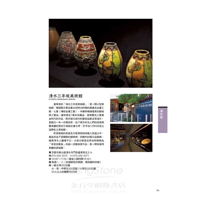 2014/07/28 距離台灣只有三個多小時航程的京都、大阪,有著不亞於台灣人的庶民文化,卻又比我們多了那麼一些引人入勝的醍醐味。這個令人不禁想一去再去的好地方,在搞笑文青帆帆貓、氣質文青郭茵娜、專業文青貓眼娜娜所組成的「帆貓娜」文青旅團筆下,會有甚麼「神奇遇」呢? Cosplay漫遊神社、混在高中生裡在心齋橋大玩相片拍貼機、一步一腳印挑戰「史上最長的商店街」、夜衝大阪城賞櫻逛景、跟歐巴桑裸泡大眾湯邊看偶像劇……懷抱一顆觀光客專屬的好奇心,和深入京阪在地文化的企圖心,玩翻天,沒什麼不可以! 【BEST回憶之作者老實說‧貓眼娜娜】 夜宿心齋橋之網咖就是你家大冒險! 所謂「深入日本民間生活」就我個人最難忘的部分,就是在京阪採訪過程中,身為工作狂的在下同時為了要兼顧一本出清送印的書,必須仰賴高速網路傳收大量數位樣做最後核對,因此不得不捨下我的伙伴,獨自跑去網咖過了一夜。 話說,日本的網咖真的很驚人,除了整潔、安靜、個人室裡面不輸給床鋪的仿皮地墊,真的是很好窩又好睡!只可惜現場謝絕攝影,不能列入「住宿推薦」的單元,但是說實話,如果各位旅人有一天真的臨時無處可去,跟著那些趕續攤錯過最末班電車的上班族「來去網咖睡一晚」,其實很不錯!包吃包喝有電視看還可以同步上網(一室雙螢幕),怕冷還有溫馨小毯子和淋浴間。在深夜裡聽著臨室此起彼落的打呼聲和敲鍵盤的噠噠搭聲,看著稿子度過一晚,真的是非常獨特的旅遊體驗啊! 別人只在乎吃喝玩樂買東西,作為一個有前途的有為文青,我們更要從有質感的文化生活去觀看京都大阪,不過,文藝腔這種事是講天分的,不如先從拍幾張超有氣質的假掰文青照開始吧? 【BEST回憶之作者老實說‧NANA郭茵娜】 拍照,是這次文青旅遊的重點戲! 每天採訪結束,都已經過了晚餐時間,雖然餓得前胸貼後背,但是菜一上桌還是不忘文青精神「猛拍」一番,首先拍菜、再來拍人、最後不忘來張大合照。有次在一間居酒屋,我們拍到引起隔壁桌兩位日本帥哥的注目,最後他們還自告奮勇幫我們三人拍合照。後來看到我們拍的這麼忘我,他們也想試試文青拍的魅力,於是我們還幫他們拍了一張呢!而貓眼娜娜還藉此跟對方換了Line,沒想到拍照也可以拍出「國民外交」! 從小學畢業之後,你有多久沒有「做勞作」了?你可能不知道,京阪除了買東西、吃東西,還有很多地方可以「做東西」!光是驚嘆貴森森的手作小物不夠看,還不如親自體驗做幾個成品騙聲「好厲害!」。無論是手染、版畫、髮簪還是章魚燒,你想得到或想不到的,其實都可以「Do一下」! 【BEST回憶之作者老實說‧帆帆貓】 自以為是藝妓回憶錄的小白合,但其實只是白色的麵龜 好吧!我承認剛開始爭取要做舞妓體驗時,一直幻想自己的扮相該是啥模樣,覺得不是《舞妓哈哈哈》裡的大澤富士子,也該是《藝妓回憶錄》裡章子怡演的女主角小白合,如今看來還是太天真了啊啊啊!(吶喊中)原來,臉畫白真的是大餅的濫觴,沒有了長髮的遮掩,塗完白漆後的臉赤裸裸的在大眾面前,剎那間我只有一個想法,這個白色麵龜又像志村健反串的人是誰?直到我意識這件事時,已經走在清水寺周邊的街道上,接著就有日文流利的金髮帥哥前來搭訕合照,不知該高興還是難過,畢竟平常的文青穿著根本桃花指數等於零啊!any way,還是很推這項體驗,因為整個就是美姿美儀訓練,以前頂著書本走一直線不夠看,現在進階終極版是頭部頂大石(藝妓頭套)啊!直到採訪結束,每次趕稿看見這些照片還是覺得很有趣,可以說是這趟旅程最難忘的回憶! 總之,這不只是一本旅遊資訊書,更是熱血文青的挑戰指南!沒試試這本書裡玩瘋京阪的旅遊方式,千萬別說你很瞭京阪唷!啾咪!
