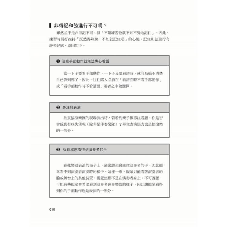 「多虧了這本書,我現在可以不看譜,僅靠記得的和弦來彈奏了。看到最後才恍然大悟,原來不同樂器講的其實是同一個概念!」