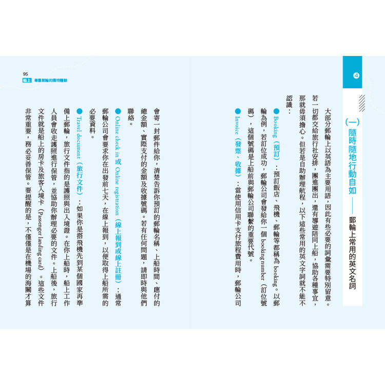 一、隨時隨地行動自如──郵輪上常用的英文名詞