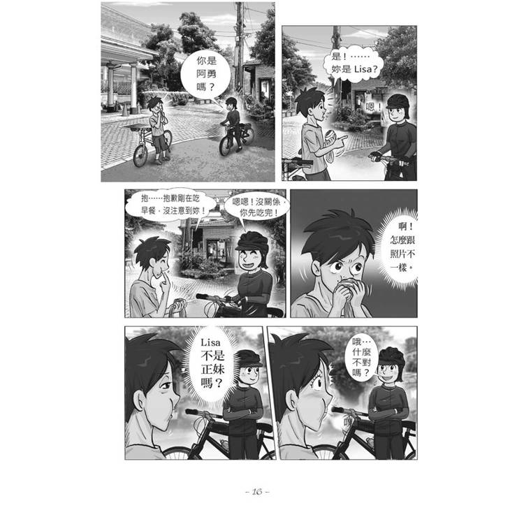 阿勇,高二生,喜歡單車,喜歡探險;長期關注一個叫「鐵馬逛台灣」的粉專;主持人Lisa姐,看來身材姣好、活潑熱情。
