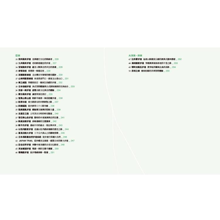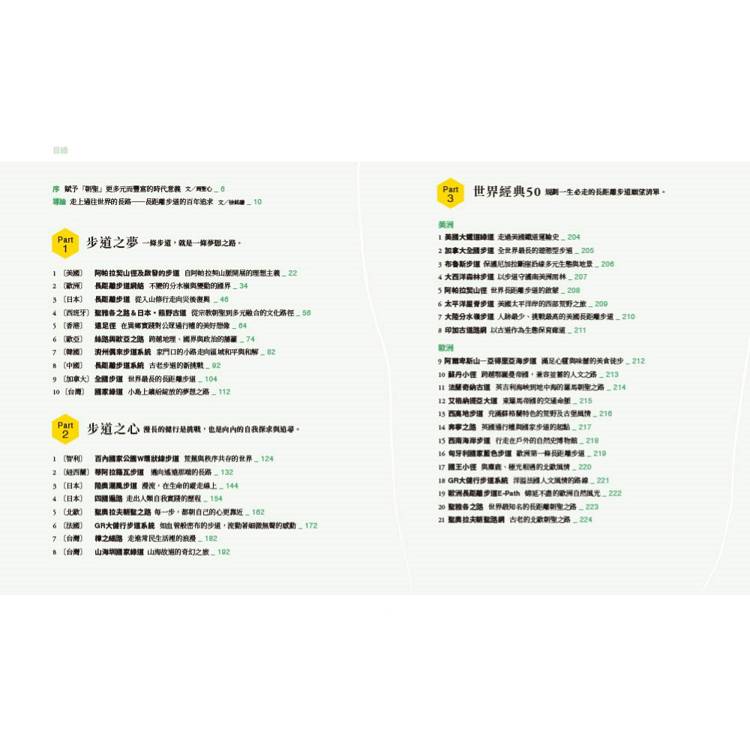 書中精選步道,除介紹步道故事、自然特色、歷史背景、文化意義、旅人經驗分享及體悟等;更由達人整理實用資訊,讓讀者可以具體規劃最適合自己的路徑: