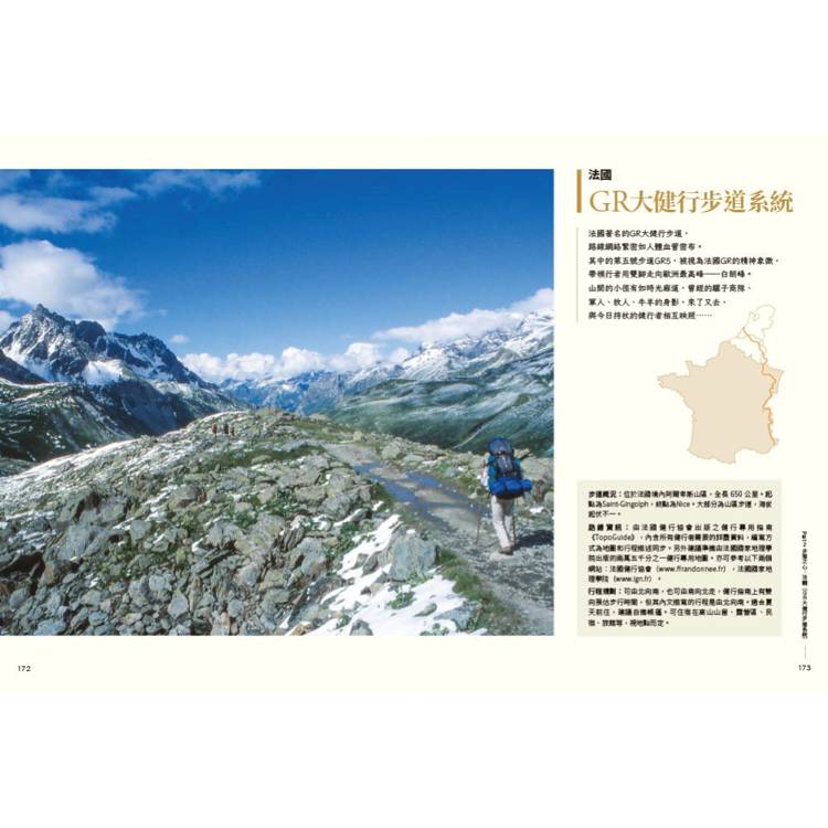 如美國太平洋屋脊步道(PCT)、阿爾卑斯高山路徑(Alps GR系列)等