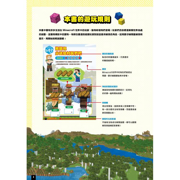 這是一本專為 Minecraft 冒險者 打造的究極解謎之書!我們把最熱血的麥塊冒險變成了充滿智慧考驗的試煉場。玩家的目標是解開世界各處的謎團,並獲得傳說中的寶物!