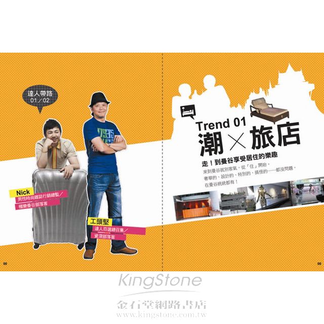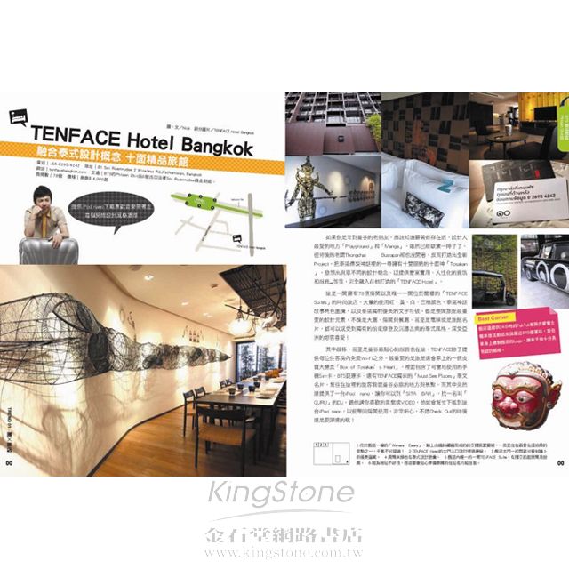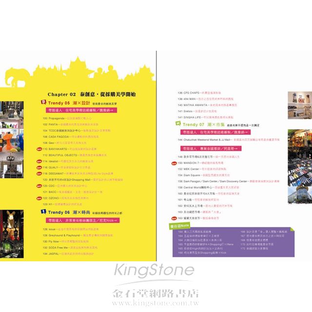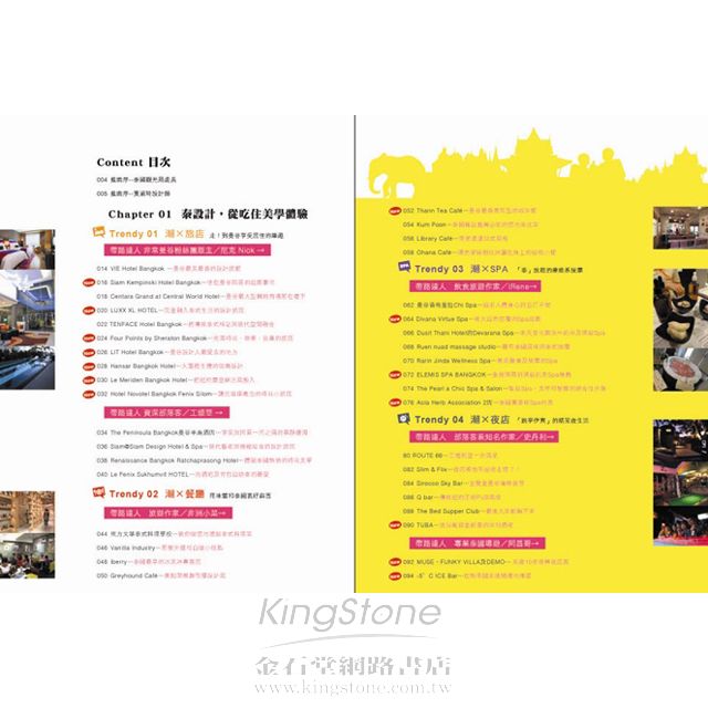 2. 收錄由達人規劃──必住的潮旅店X14,必逛的潮夜店X9。必看的潮設計及時尚潮店X22。必吃必玩的潮餐廳及潮SPAX16。必敗的潮市集X15等等,共80個你所不知的曼谷潮店路線及點,讓讀者體驗不同的曼谷另一面。
