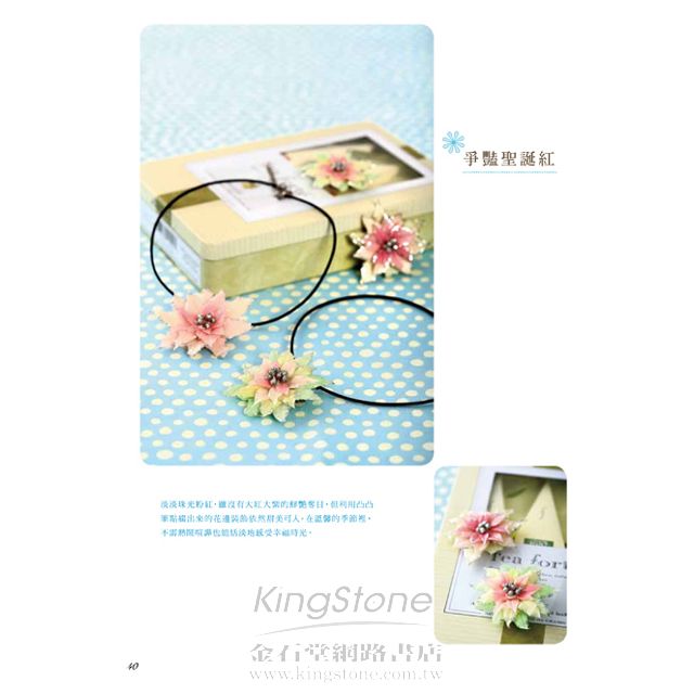 花.不再是觀賞用,她可以結合掛鉤成為美麗的飾品。或是利用「挑」的技法,做出刺繡效果,簡單的重疊技法,讓你一學就會。