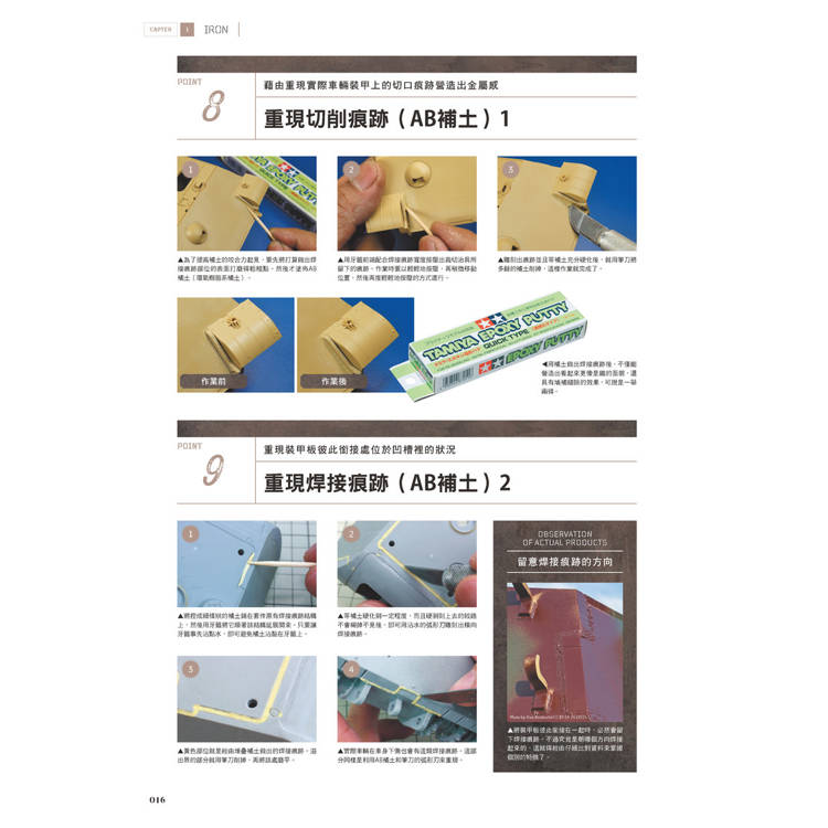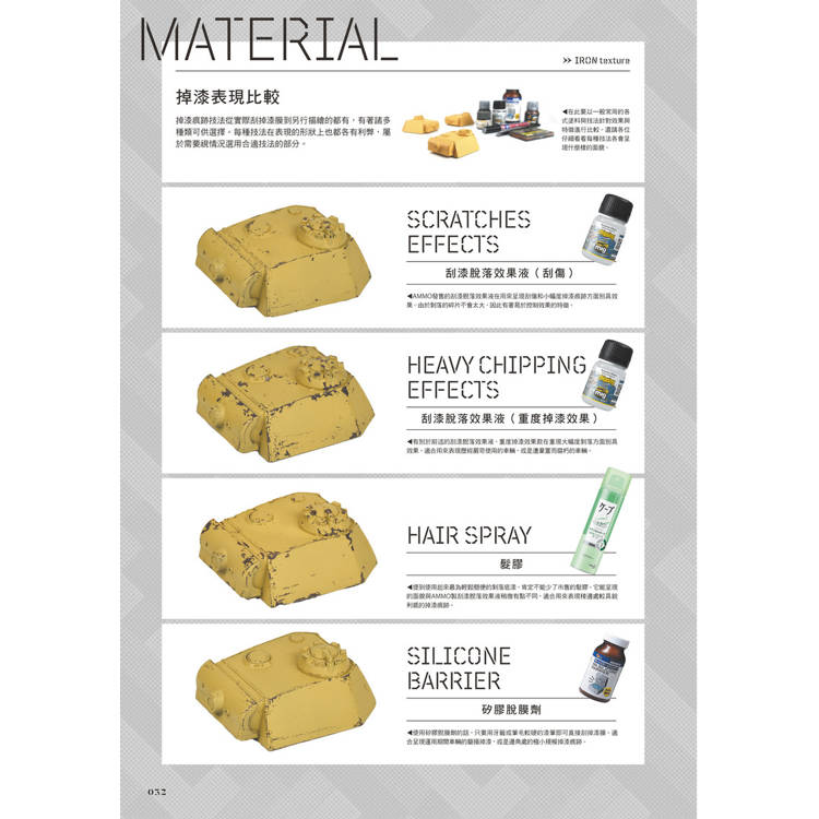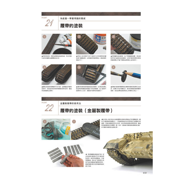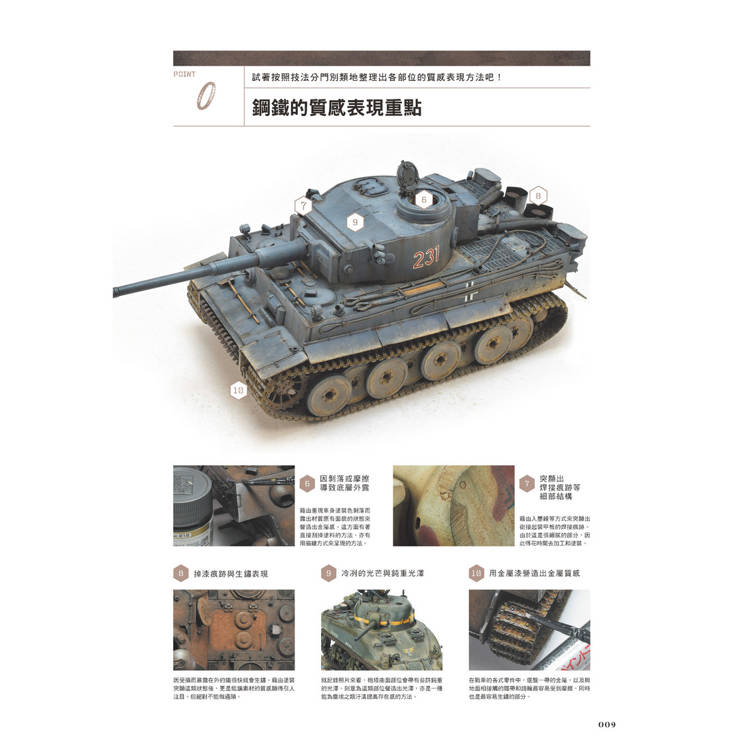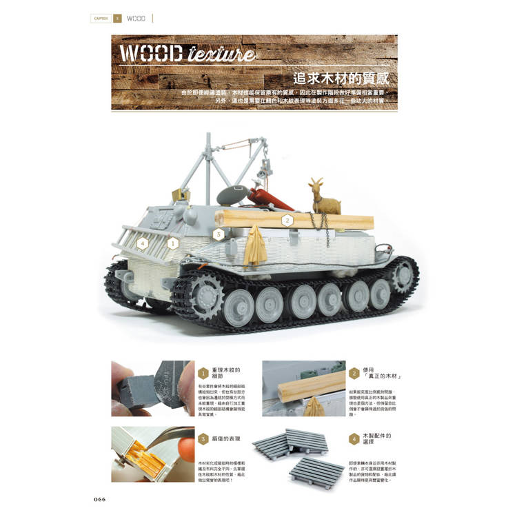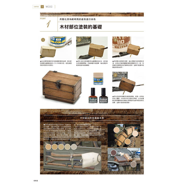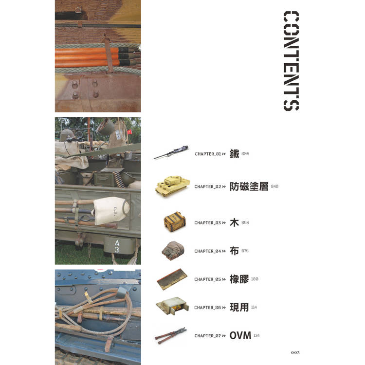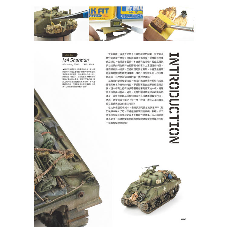 在比例模型的領域中,最需要講究質感的就屬AFV(戰鬥裝甲車輛)了吧。不過這類表現對於飛機、船艦,以及角色模型等其他領域來說也是關鍵性的要素。因此請以本書為參考,熟練地掌握住能夠將塑膠變成像是金屬或木材一樣的模型鍊金術吧!